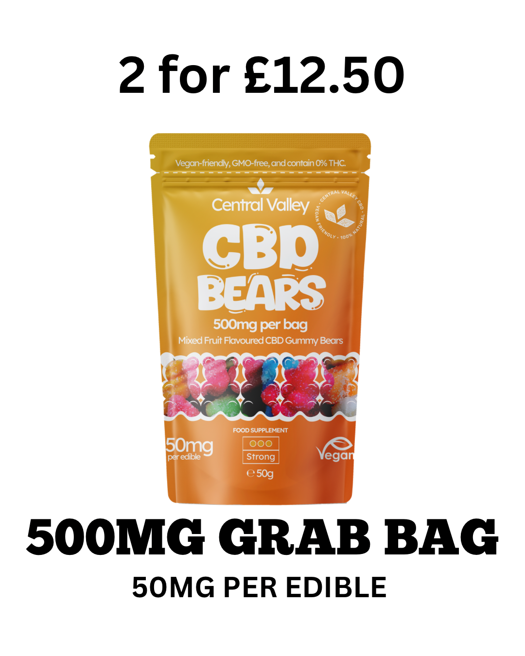Double the calm, double the value. Our 2 x 500 mg Broad Spectrum CBD Gummy Bear Grab Bag Bundle gives you 20 high-strength gummies (1,000 mg total CBD) at a special price of £12.50—saving you money while ensuring you never run short on powerful, plant-based support.