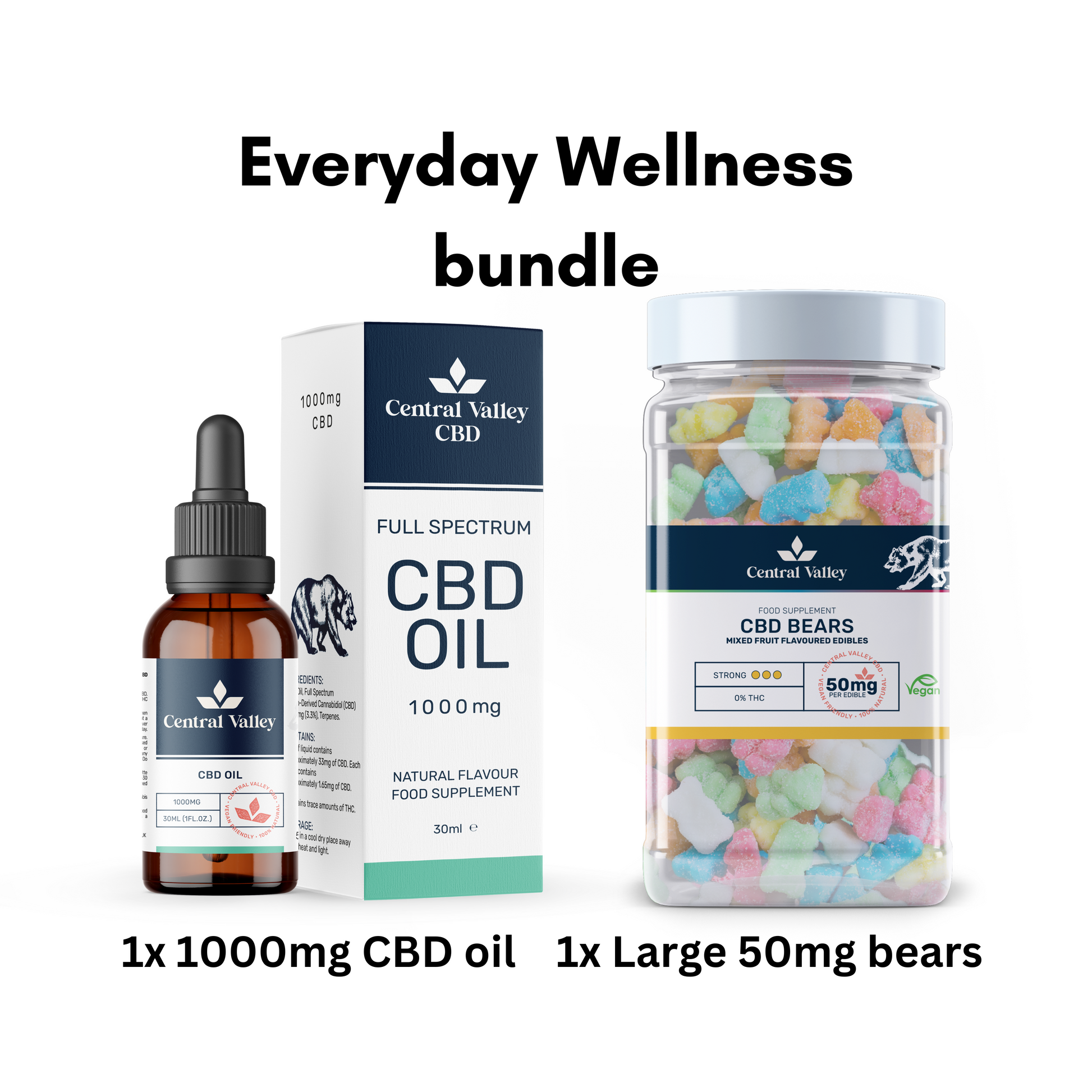 Everyday Wellness Bundle 1000mg Full Spectrum CBD Oil + Large Tub of 50mg Gummies